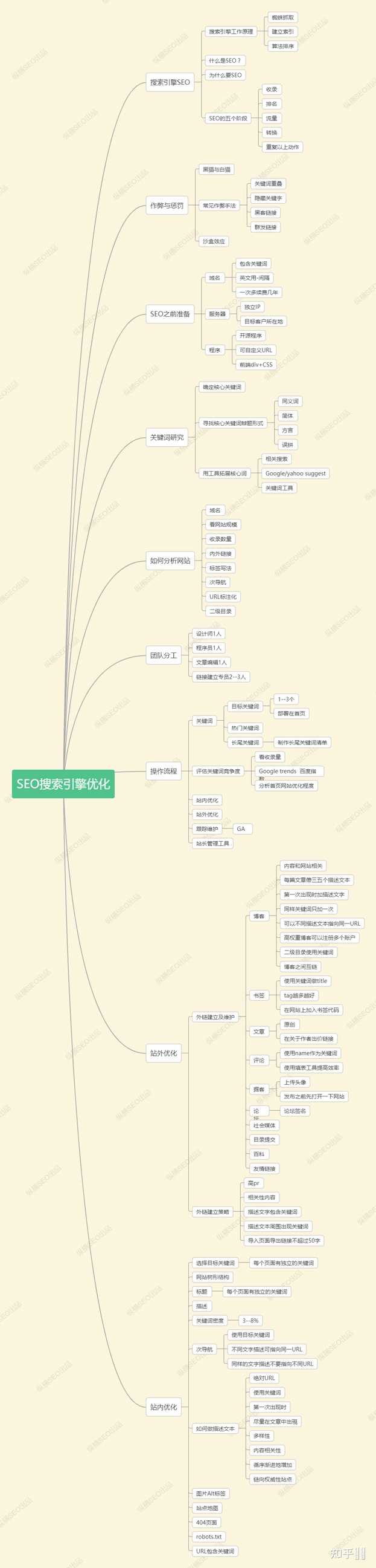 先来个干货大图,让大家对SEO网站优化整体框架有个大概认知,下面会抽取一些重点部分来详细说(可提供高清大图)