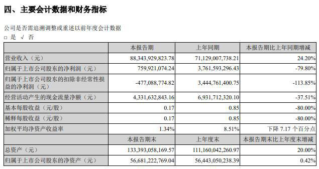 22 日消息 顺丰控股发布半年报,上半年营业收入 883.44 亿元,同比增长 24.2%;净利润 7.6 亿元,同比减少 79.8%;基本每股收益 0.17 元。