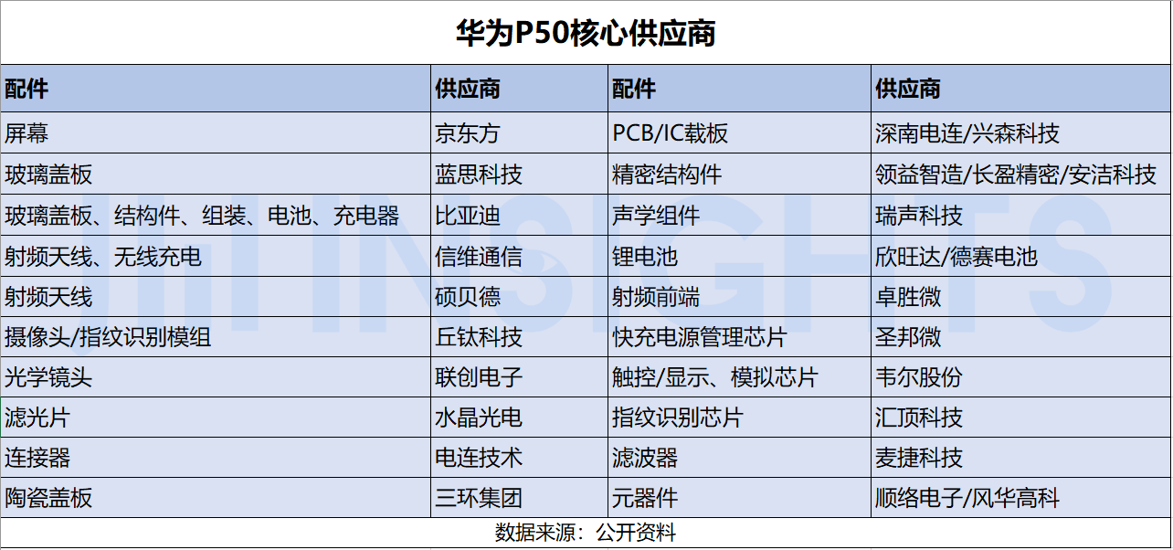 去年华为 Mate30 拆解结果显示,海思已经实现处理器、基带、天线开关等的自研,但射频前端模块仍来自日本村田制作所;P40 的拆解结果同样显示,已经在很大程度上摆脱了对美国公司的依赖,并开始 PA 的研发,但射频前端组件仍然主要来自高通、Qorvo 和 Skyworks 等厂商。
