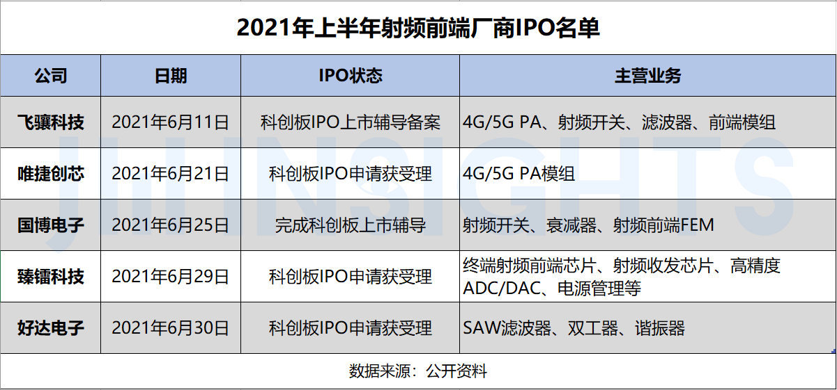 - 国产射频厂商密集 IPO,但是在代工、材料等环节仍然薄弱,供应链需要相互扶持成长。
