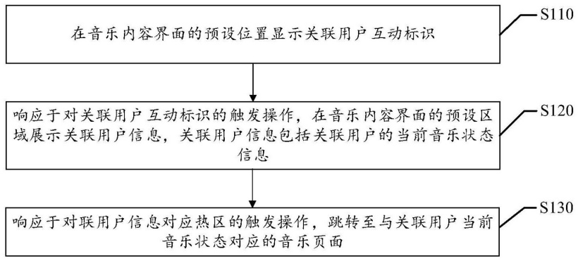 专利摘要显示,该音乐社交实现方法包括:在音乐内容界面的预设位置和区域显示关联用户互动标识和信息,响应于对关联用户信息对应热区的触发操作,跳转至与关联用户当前音乐状态对应的音乐页面。