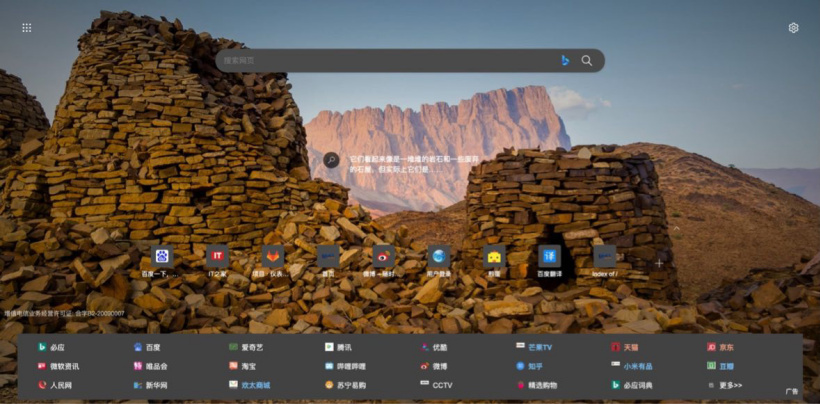 目前测试,新标签页下方的广告确实已消失,不过没有修复完全,左下角的“增值电信业务经营许可证”依然为广告留有空白。