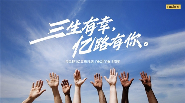 值得一提的是,realme 官微还发布了一张三周年预热海报,并表示“三生有幸,亿路有你”。