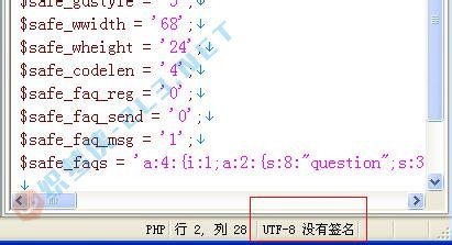 问题一:首先先确定php配置环境没问题,如果一个服务器有的网站显示验证码有的不显示,可以排除运行环境的问题;出现这种情况有可能是:可能是php中GB库没有开启。 解决方法:打开php.ini找到extension=php_gd2.dll去掉前面的#;然后重启服务。 下个探针或者用<?php phpinfo() ?>看下是否开启GB库; 问题二:如果网站编码是utf-8的,有可能是bom头的问题,GBK编码的网站不会出现这种情况。 解决方法:使用非windows自带文本编辑器,推荐emeditor,打开下面三个文件,common.php,vdimgck.php和data/safe/inc_safe_config.php文件,然后找到右下角,如果是带签名的话,保存为不带签名的;检查也可以批量去掉下BOM头;