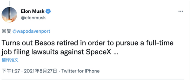 为了提高覆盖范围和升级速度,SpaceX 目前正寻求 FCC 许可,以运营由近 30000 颗卫星组成的第二代星链网络。针对这次最新的抗议信,马斯克则发表评论表示,贝索斯退休就是为了一天到晚全职对 SpaceX 提起诉讼。