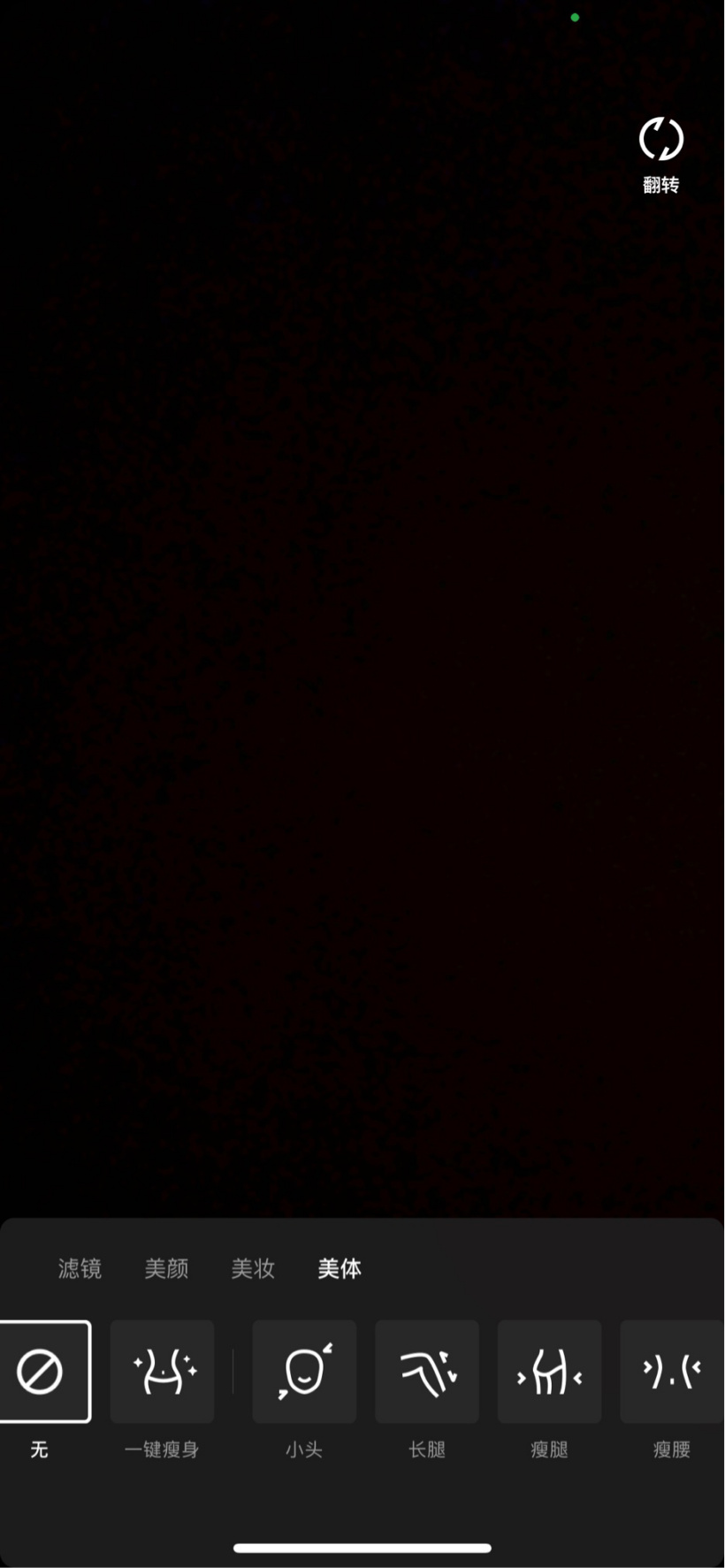 从下图可以看到,用户可以在 QQ 的拍摄功能中选择“美体”,有“一键瘦身”、“小头”、“长腿”、“瘦腿”、“瘦腰”等多个调整选项。