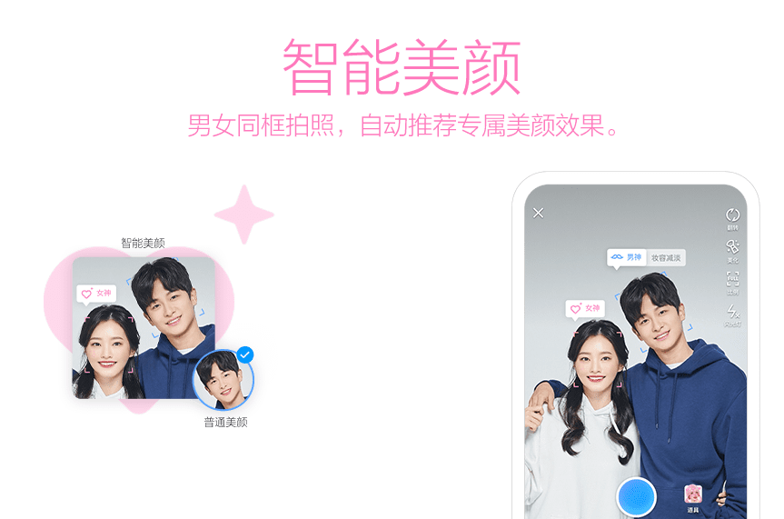,QQ 在 8.8.20 版本刚刚推出了“男女同框智能美颜”功能,可根据男女性差异自动推荐专属美颜。不得不说,QQ 在这一方面确实是玩明白了。