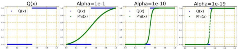 图 6. 不同 alpha 下 tanh 函数对量化函数的逼近程度