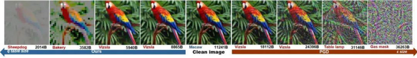 专注对 AI 的对抗样本和模型安全性进行研究的阿里安全高级算法专家越丰提醒,除了 AI 视觉场景,真实场景中也可能存在这种对抗攻击,例如针对某知名 PS 软件,只要提供具备对抗攻击性质的 JPEG 量化表,就能产出有“攻击性”的图片。