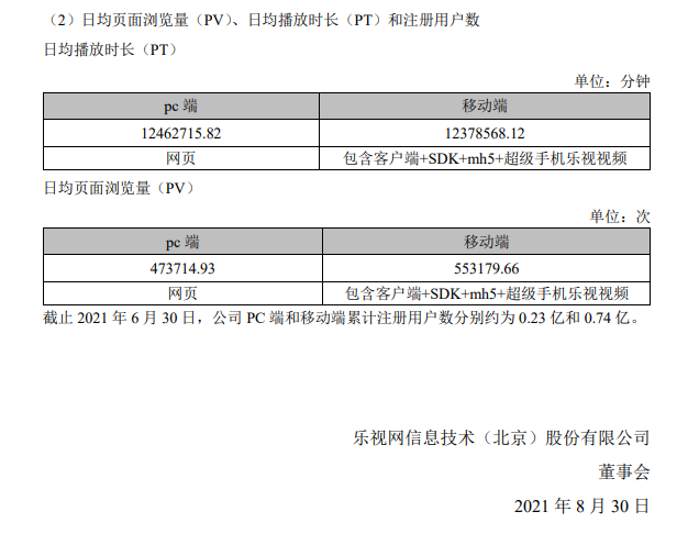 此外,报告还显示,2021 年上半年度,乐视网视频网站新增注册用户约 300 万,新上跟播剧 34 部(1179 集)、片库剧 501 部(15714 集),电影 180 部、动画 31 部(1249 集)。