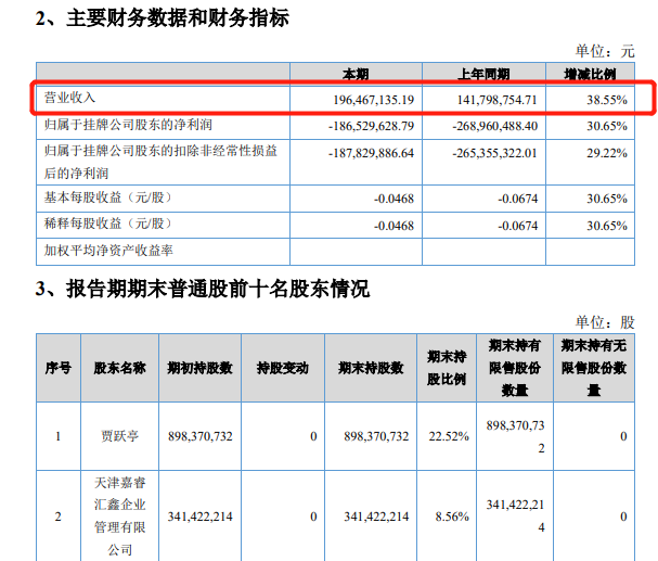 30 日消息 企查查 App 显示,近日,乐视网信息技术(北京)股份有限公司新增企业公告,公告包含 2021 年半年度报告摘要等,报告显示,乐视网报告期营业收入 1.96 亿元,较上年同期增长 38.55%;归属于挂牌公司股东的净利润为 -1.86 亿元,较去年同期增长 30.65%。