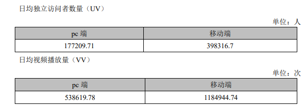 日均视频播放量:PC 端为 53.86 万次,移动端为 118.49 万次。