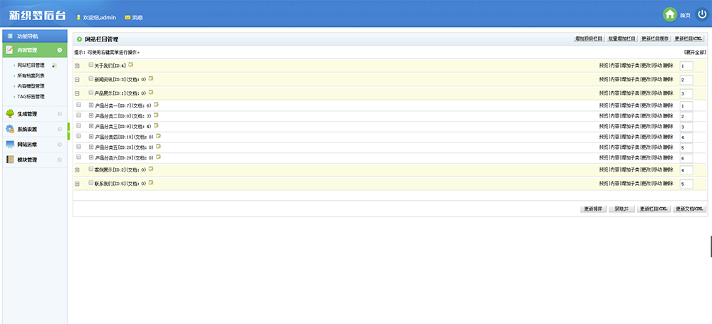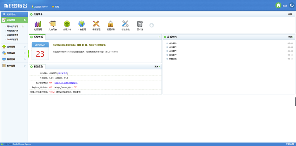 很多人没用过织梦程序,不知道后台到底是什么样的,想看看截图,今天就把后台大概截图说明一下,具体还需要安装后才能更直观的看到。