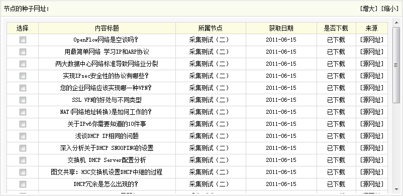 附加选项:此选项一共有3种采集模式可供选择:第一种为“监控采集模式(检测当前或所有节点是否有新内容)”,选取后,系统只会采集指定节点中更新的内容;第二种为“重新下载全部内容”,选取后,系统会采集指定节点中的全部内容;第三种为“下载种子网站的未下载内容”,选取后,系统只会采集指定节点中未下载过的内容,包括以前没下载的和更新的内容。
