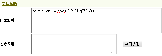 这里的文章标题处在”<h1></h1>”之间,由于在此页面中多次出现这组标签,因此这里应该填写“<div class=”arcbody”><h1>[内容]</h1>”作为文章标题的匹配规则。如果在文章标题中含有相关链接等,可使用过滤规则加以处理,这里无需设置。填写后,如图24所示,