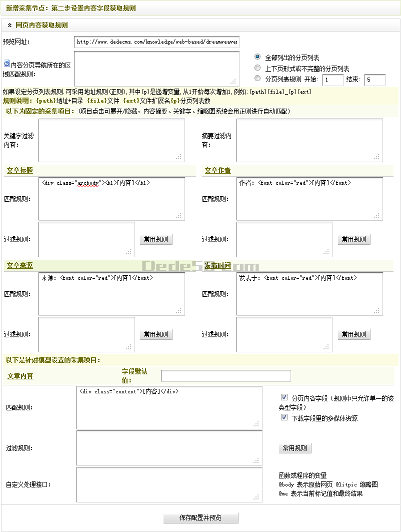 这个部分是编写采集规则的重点,也是难点。需要特别注意。