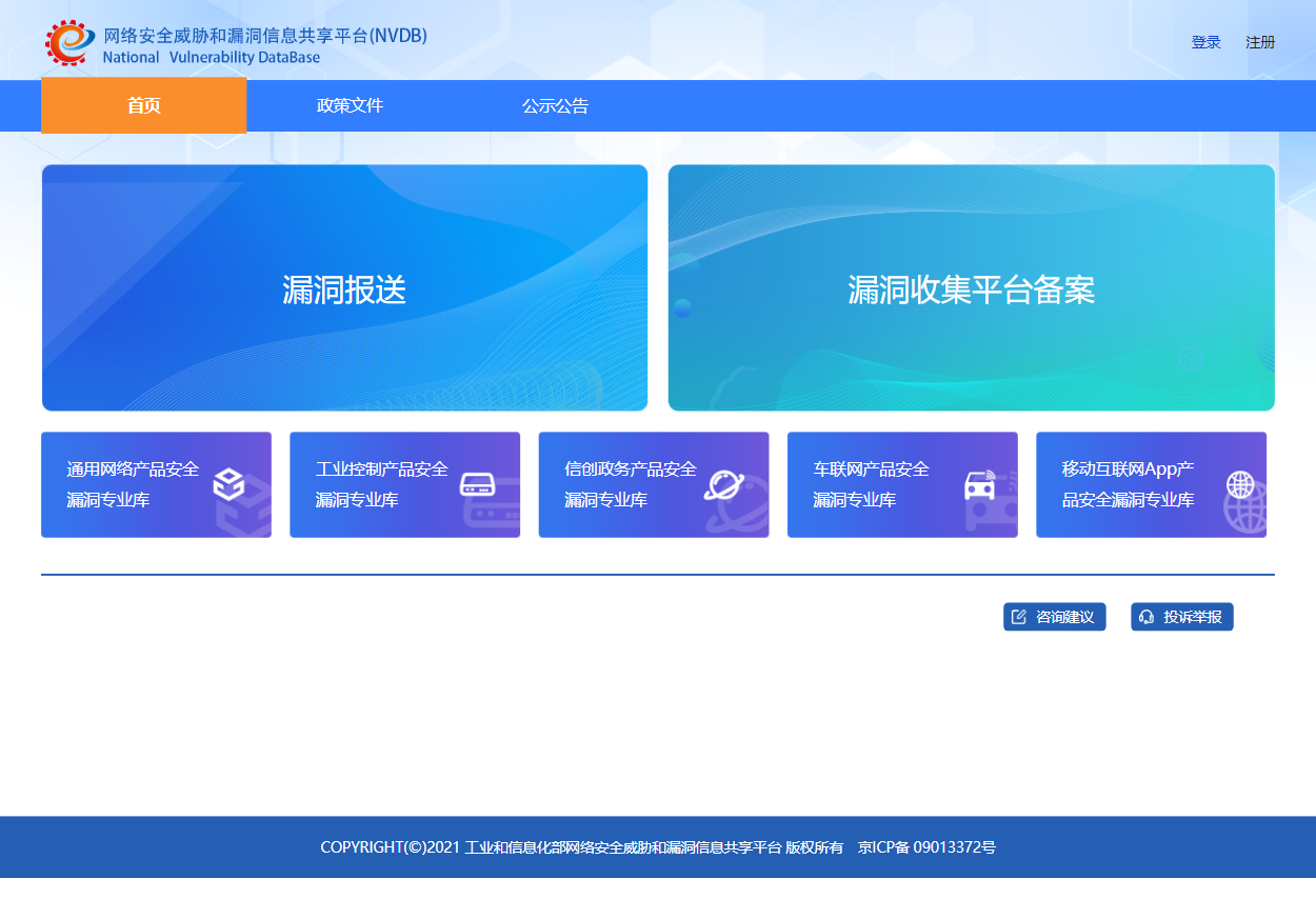 9 月 1 日消息 据工信部官网消息,为落实《网络产品安全漏洞管理规定》有关要求,工业和信息化部网络安全管理局组织建设的工业和信息化部网络安全威胁和漏洞信息共享平台(以下简称“平台”)(https://www.nvdb.org.cn)于 2021 年 9 月 1 日正式上线运行。