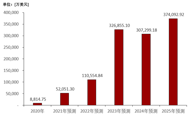 中国 DPU 市场规模,2020-2025 年预测,来源:头豹研究院