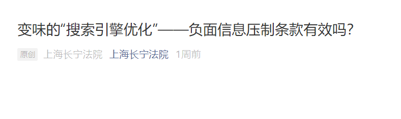 近期,上海市长宁区人民法院表示,该案件合同涉及“负面压制”条款约定,“对指定关键词搜索引擎优化,实现百度前 5 页无明显负面内容”,“负面压制期为 30 天”。