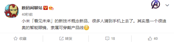 13 日消息 小米现宣布:小米新技术概念新品,明天见。