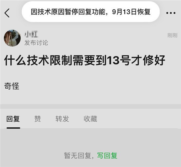此前,有媒体报道豆瓣暂停恢复功能,PC 端和客户端,都不能对帖子进行留言和回复。留言时的页面显示“因技术原因暂停回复功能,9 月 13 日恢复”。