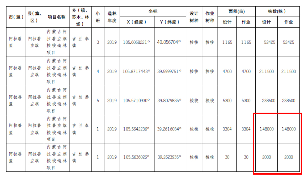 资料显示,蚂蚁森林 277 号林是由蚂蚁集团捐赠资金,并由中国绿化基金会在 2019 年春天负责种植并养护的生态项目。根据第三方机构于 2019 年 12 月出具的核查验收报告,277 号林的 15 万棵梭梭均已在 2019 年春天完成种植作业。