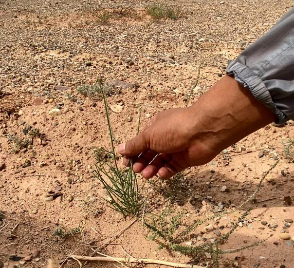 277 号林护林员介绍说,由于阿拉善地区降水量较少,按照生态承载能力和科学绿化的要求,梭梭种植规划的密度比较稀疏,每亩种植数量约为 45 棵。同时,梭梭是一种适合荒漠化地区的低矮灌木,地表以上较矮小,但根扎得深,主要靠根部来固沙。一遇到干旱年份,梭梭会变得更矮,以减少水分流失,这也是梭梭为应对干旱而进化出的本领。