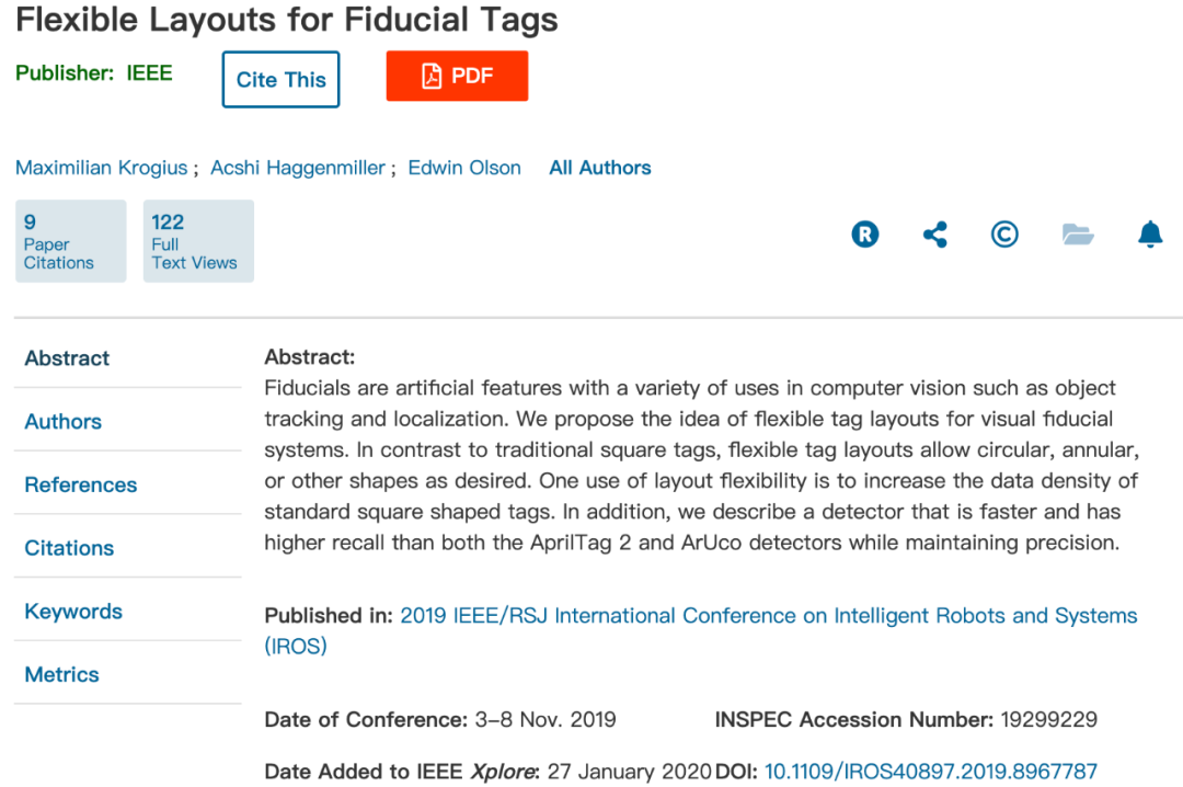对于这一系统,April 实验室到目前为止共发表了 4 篇论文,其中最近的一篇发表在 2019 年的 IROS 上: