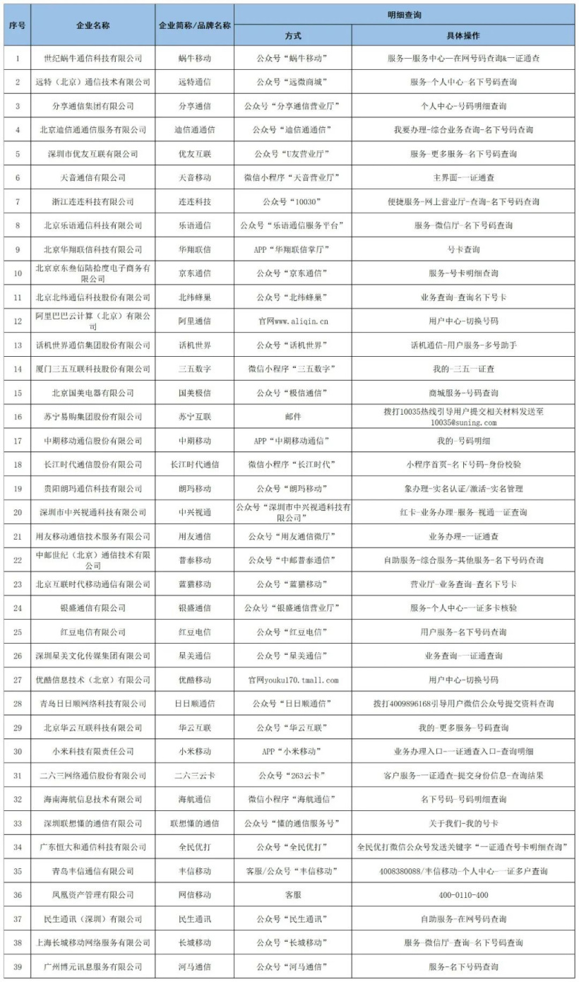 (1)如果您是三家基础电信企业的用户,可以到相应基础电信企业的自有营业厅,持本人身份证原件查询;