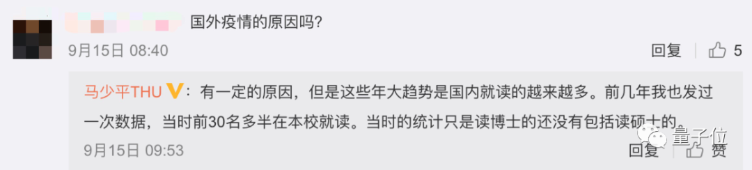 这是马教授给出的回应,他直言:在三四年前,系内前 30 名的学生中,就有超过半数的人选择在系内读博了。