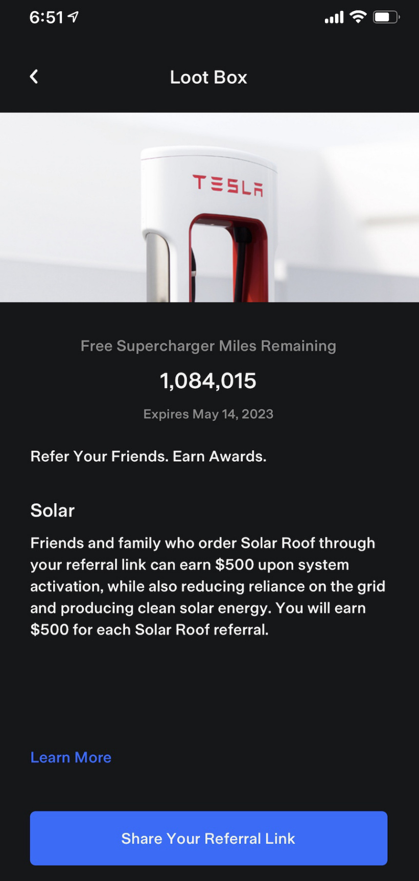 19 日消息 特斯拉本月宣布取消车主引荐计划,意味着用户向他人推荐购买特斯拉汽车,将不会获得免费 1500 公里的超级充电额度。在海外,这一计划同样取消,但是只有太阳能屋顶还保留引荐计划,购买太阳能电池板则不受支持。
