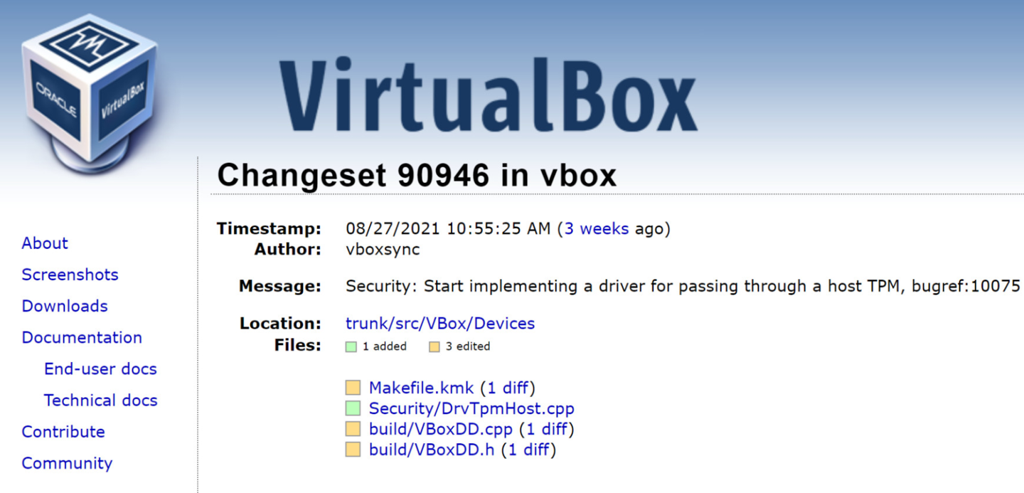 借助该驱动程序,VirtualBox 能够直接使用主机 PC 的 TPM 模块来克服这一新的 Windows 11 标准,8 月 27 日添加的 VirtualBox 变更集编号 90946 列出了这一新变更。