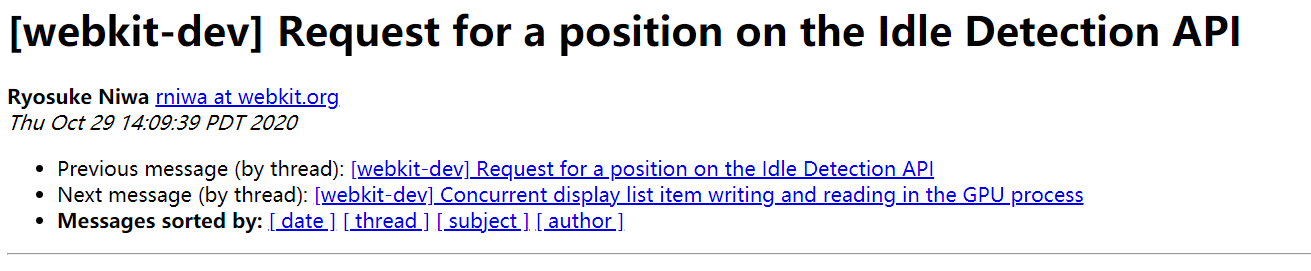 出现争议的 API 名叫 Idle Detection API,该 API 可以检测用户是否处于空闲状态,如果用户没有与键盘、鼠标、屏幕交互,且电脑没有开启屏幕保护程序、锁定等,该 API 将会通知开发人员。
