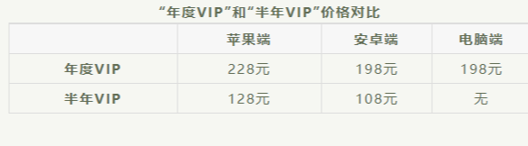 此外,12 个月的爱奇艺“黄金 VIP”在电脑端需要 148 元,苹果端需要 248 元,差价达 100 元;而芒果 TV 同样存在苹果端价格更高的问题,只有“季风半年会员”例外;哔哩哔哩“电视大会员”套餐苹果端也比 PC 和安卓高出 5 元,无论是是否连续包,但季度/年度套餐价格相同。