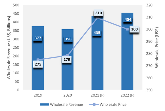 Kumar 补充说:“我们预计全球智能手机批发价格将在 2022 年小幅回落至 300 美元。供应限制和元器件价格飙升的缓解,以及预计将在 2022 年上半年更新的 iPhone SE 型号,将推动价格回落。我们预计全球智能手机批发价格将在 2023 年至 2025 年回归上行轨道。”