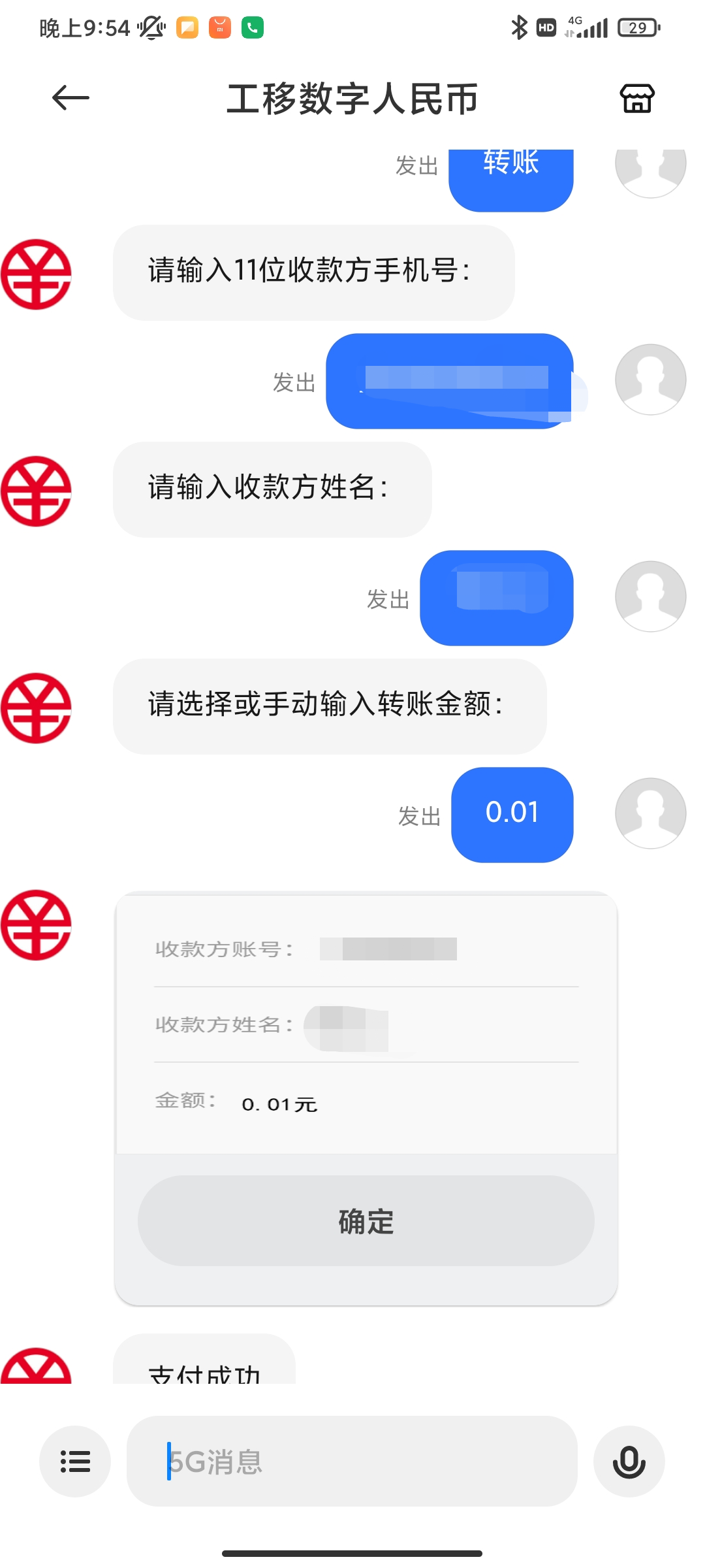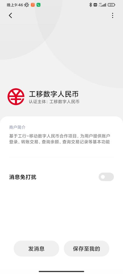 在 5G 消息上,搜索“工移数字人民币”即可发现数字人民币钱包。