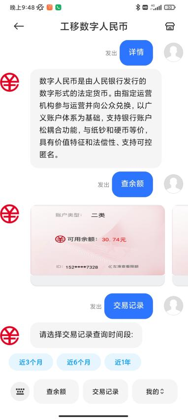 通过查余额功能,可以快速查询数字人民币的余额、账户类别、交易额度。