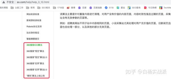 5、关注360搜索算法,使用360站长工具自查关注360搜索官方算法,就像百度算法一样,避免网站中了算法。怎么看?在360站长平台后台都有哈。如下图: