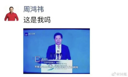浙江卫视《周末面孔》节目播放到雷军在世界互联网大会发表演讲时,字幕介绍姓名条却显示其为“周鸿祎,小米科技创始人 董事长”。