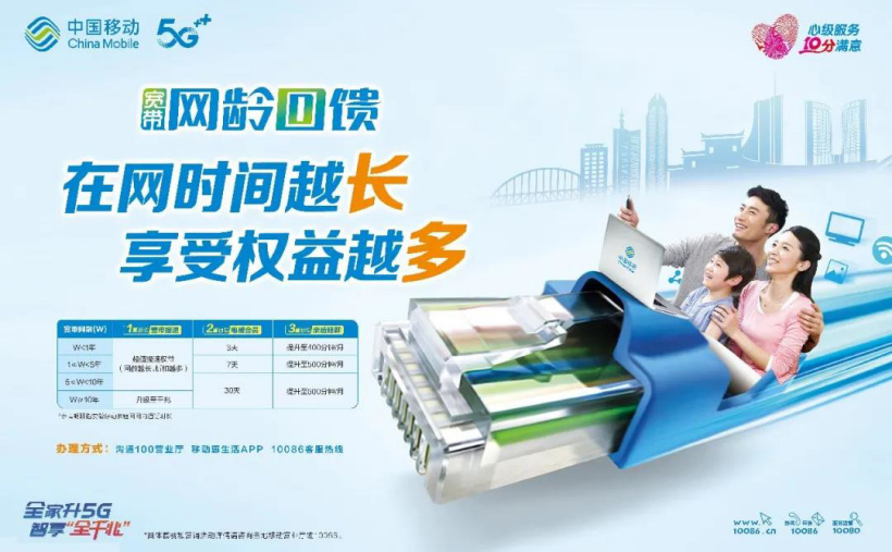 据悉,安徽移动查网龄活动主要是宽带方面的升级,例如网龄达 1 个月以上即送 100M 以上长期宽带提速包,10 年及以上的用户可直接升级千兆网。