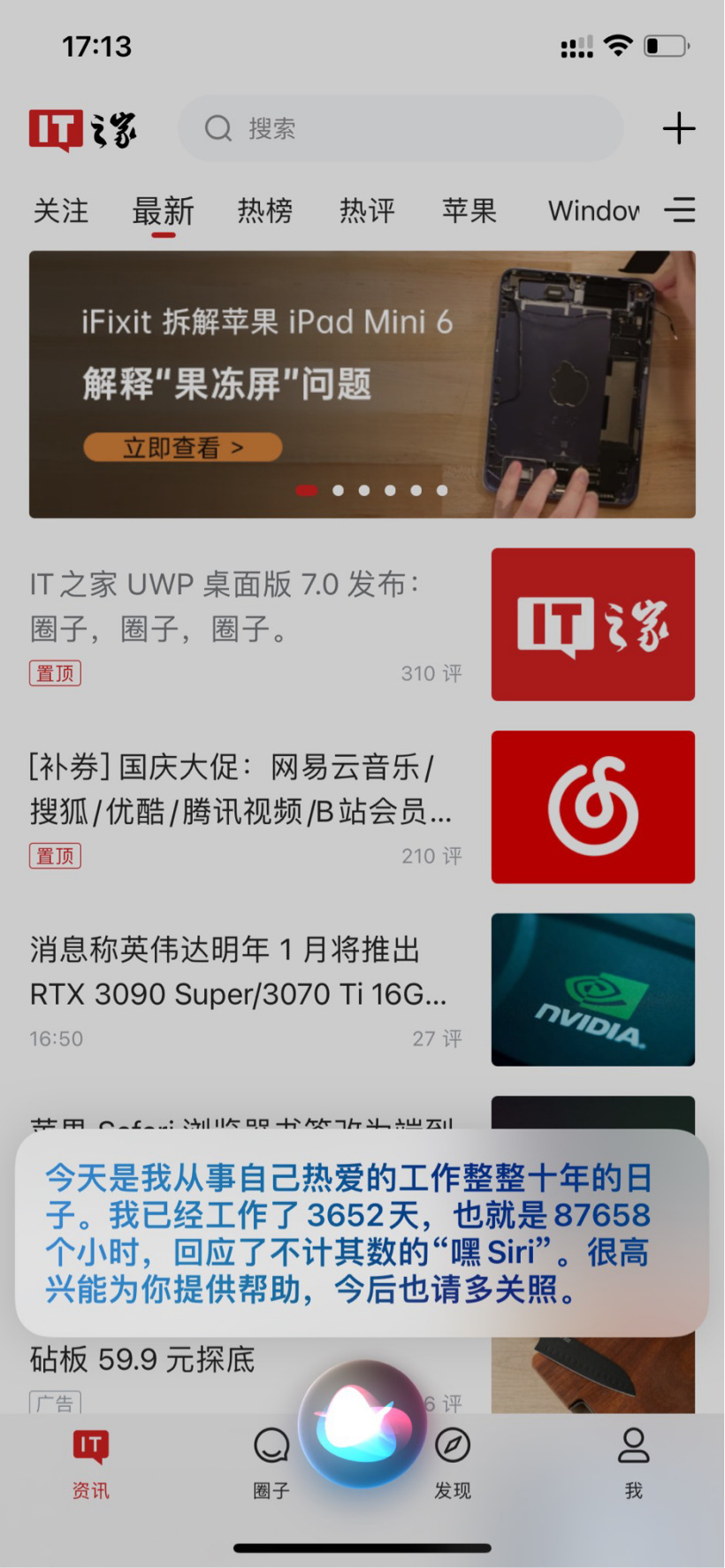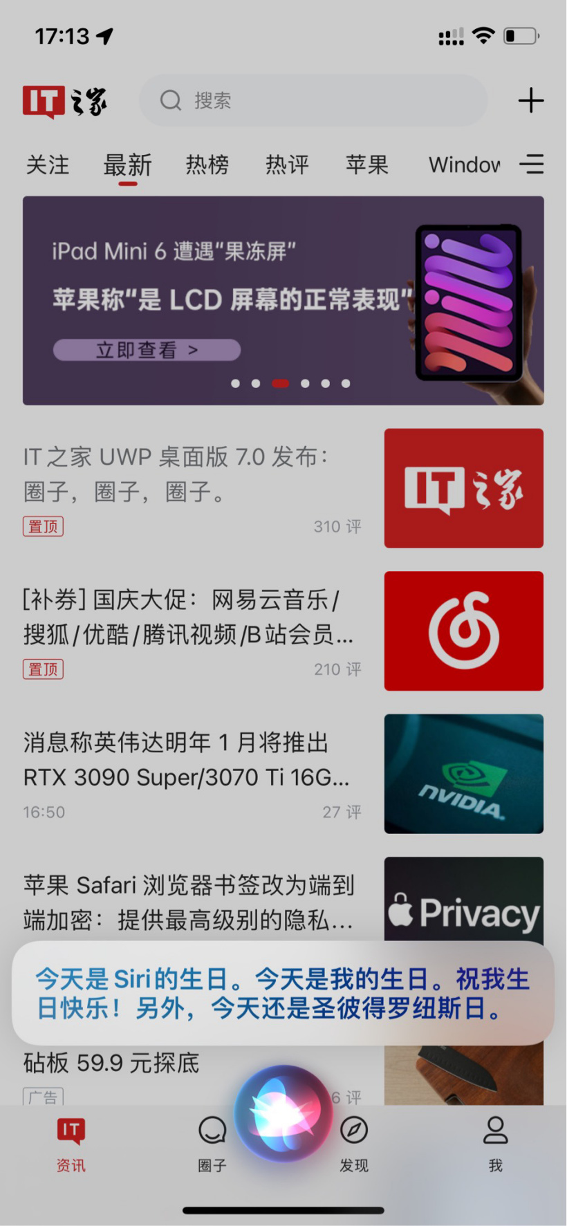 顺便说一句,如果你今天对 Siri 说 "生日快乐",这个语音助手会提供一些有趣的回答。下图源于IT之家网友 @小闸机 的投递:
