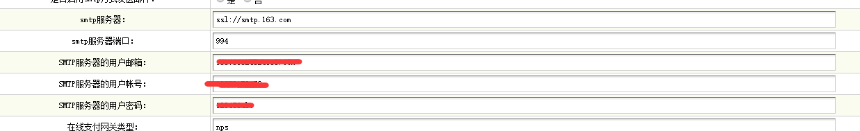 3、后台设置(这里阿里云把25端口关闭了,所以只能用163 SSL端口,注意这里的smtp服务器是ssl://smtp.163.com,端口是994)