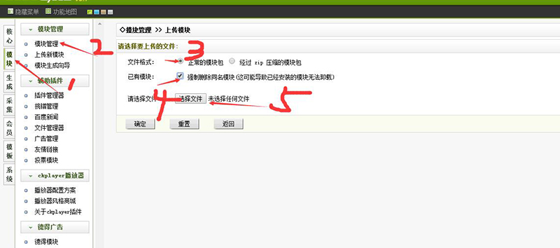第一步:现在后台 模块 上传下载下来的插件,有GBK和UTF两种编码,你网站是哪种编码就使用哪种!