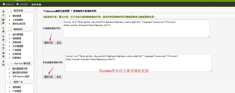 第十一步:这是每个字段的代码,复制到你想要视频展示的模板文件粘贴