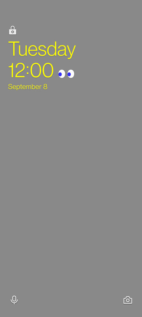 在最新的一加桌面 5.2.34 版本中,出现了一个新的锁屏时钟主题,带有黄色文本和《吃豆人》游戏中小鬼的眼睛。