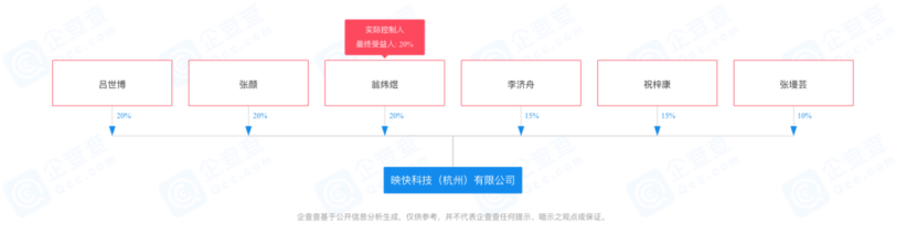企查查资料显示,吕世博在映快科技(杭州)有限公司中持股比例为 20%,映快科技地址在杭州某大学科技园。