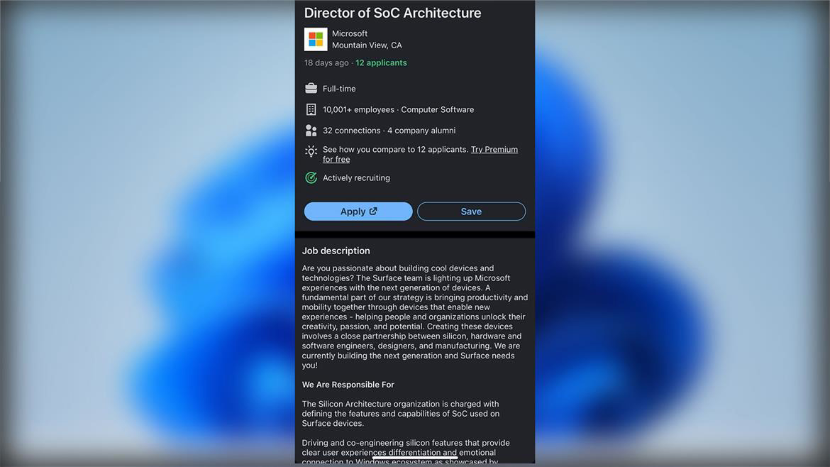 招聘启事中还提到,芯片架构部门作为一个整体,负责为 Surface 设备的 SoC 提供新特性和新功能。并明确指出,微软目前正在打造下一代 Surface 设备。当然这也可能是招聘一位管理微软与 AMD 关于半定制设计业务方面的负责人,而不是微软真的完全去自研芯片。这次之所以特殊的原因是因为这次的信息是完全针对 Surface 部门的。