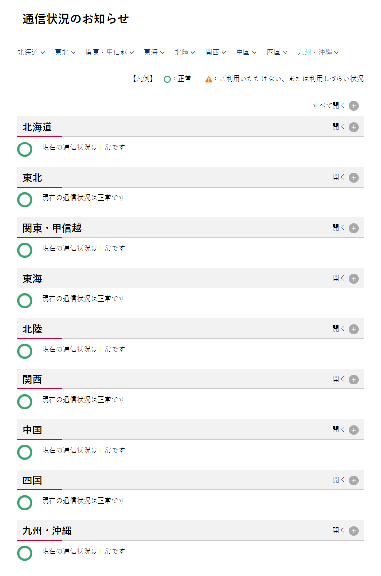 ,截至发稿,NTT docomo 官网状态页面显示,日本各地的通信均已恢复正常。