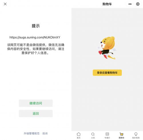 以淘宝为例,如果继续访问链接,则会跳转至商品详情页,用户可以在微信中操作购买,比此前要复制淘口令再打开淘宝方便很多。不过,初次在微信里打开淘宝链接,并不能直接完成付款动作,需要重新登陆。抖音分享至微信的链接,还需要通过复制口令。