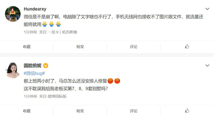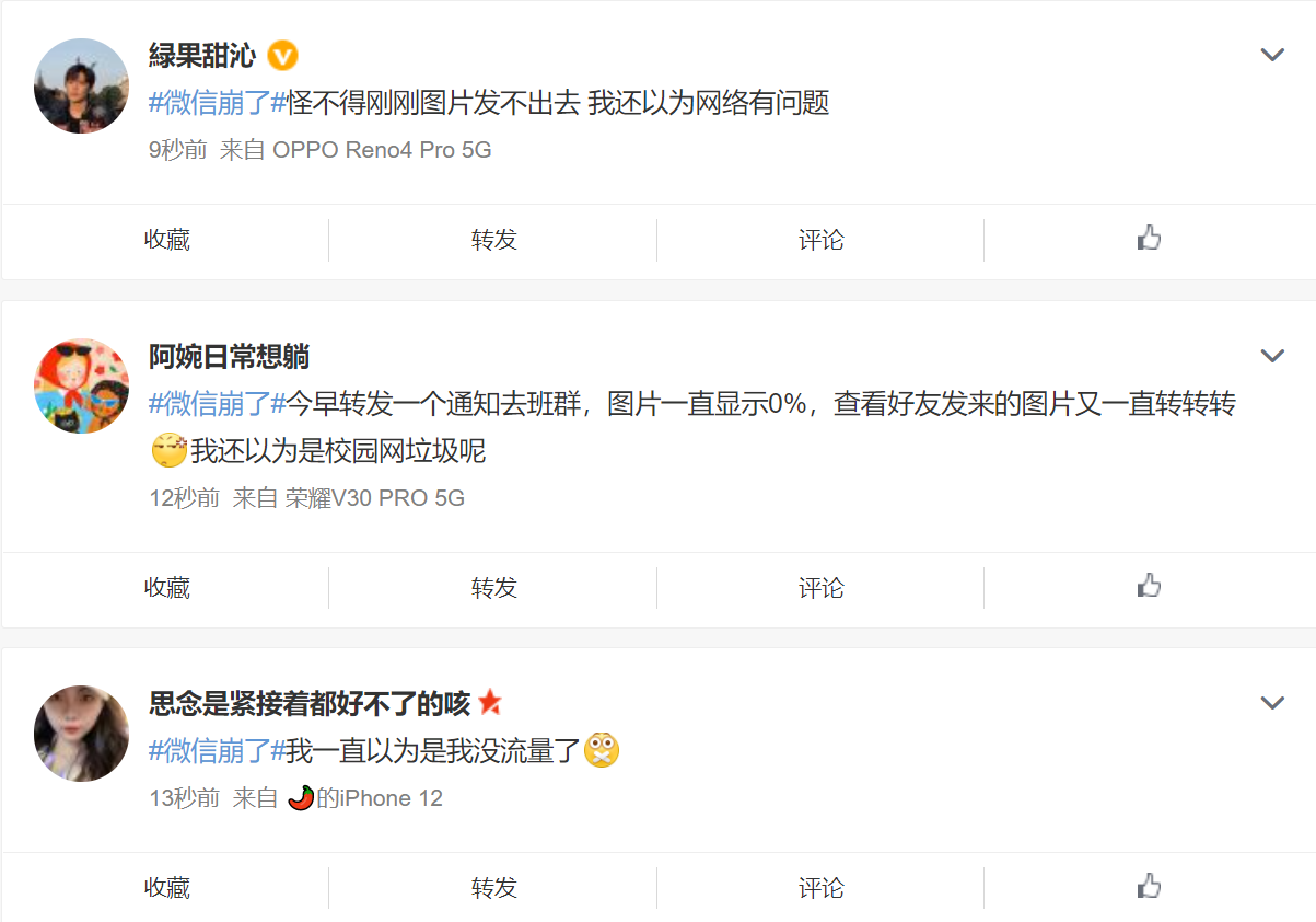 ,截止发稿仍有网友在反映这个问题,对此,微信方面向媒体表示,正在紧急修复中。